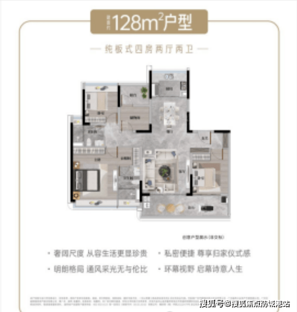 从户型和装修来看,项目在售实景现房,户型覆盖刚需和改善,建面约127-128㎡三室、140-143㎡四室,户型方正、南北通透、采光充足,装修交付标准扎实,一线品牌加持,细节彰显质感,能够满足不同家庭的居住需求。而且项目预计2026年7-8月会加推建面约171-253㎡五室户型,为高端改善家庭提供更多选择。