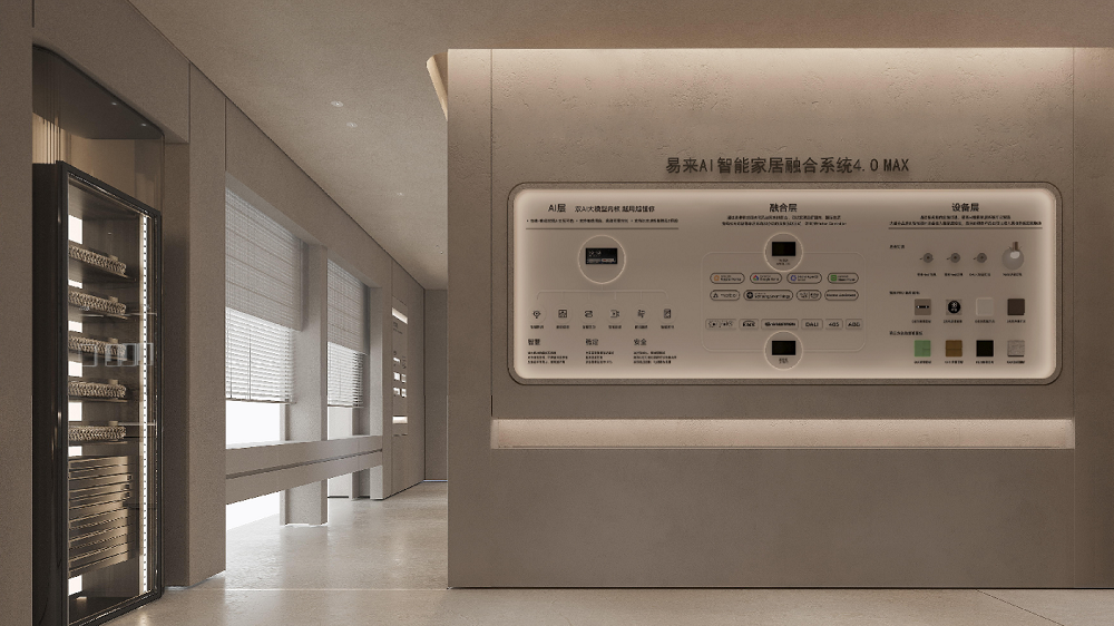 产品展示区域的模块化升级成为终端效率与体验优化的关键。新SI标准店采用灵活的模块化设计,集中展示易来AI智能家居融合系统,涵盖智能照明、智能交互、智能传感、智能遮阳、智能影音、智能暖通六大核心品类,全面彰显品牌在全屋智能领域的全链条服务能力。