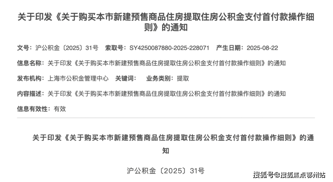 ,且不影响后续公积金贷款额度计算。这意味着公积金缴存人可以“又提又贷”,极大减轻了购房初期资金压力。对于购房者最为关心的公积金提取支付首付款问题,上海市公积金管理中心也出台了《购买本市新建预售商品住房提取住房公积金支付首付款操作细则》(2025年8月26日起施行).