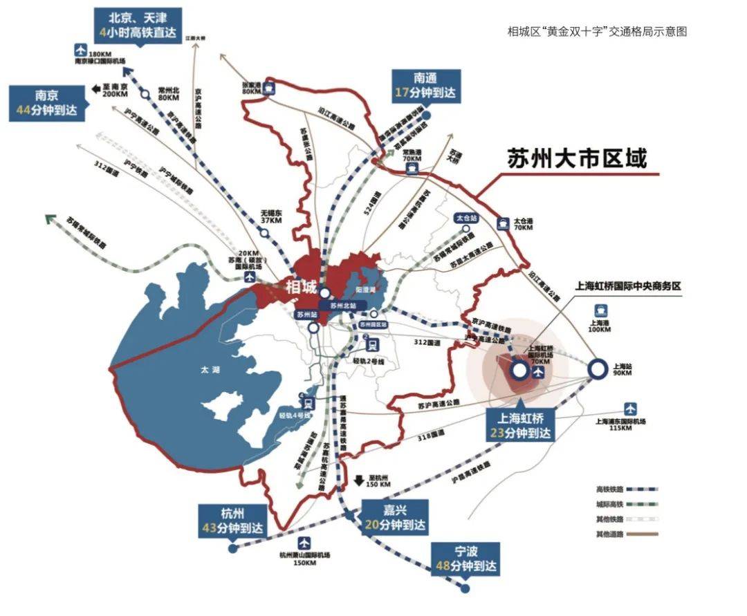 这里,是苏州未来的交通心脏。京沪高铁与通苏嘉甬高铁在这里交汇,城际铁路网络也在此织就“双十字”枢纽。这意味着,从这里出发,1小时就能快速连接上海虹桥、浦东机场等长三角核心枢纽。苏州北站即将扩建升级为国家级综合交通枢纽,百亿投资,未来可期。选择在高铁新城置业,就是把握城市发展的核心动脉。